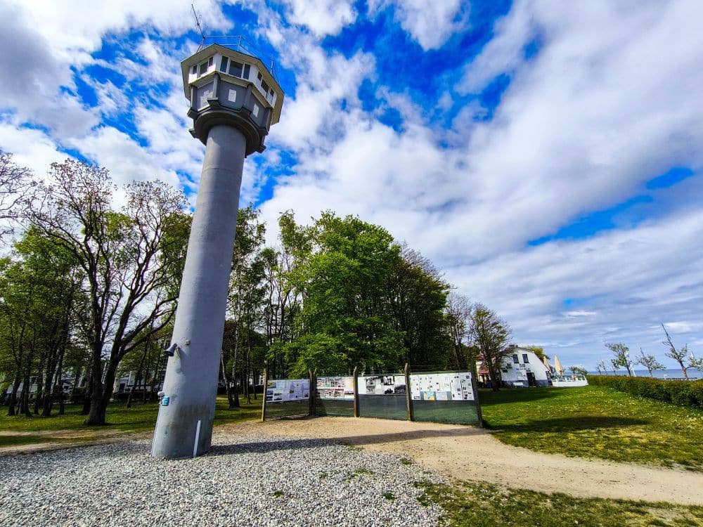 Heute beherbergt das denkmalgeschützte Bauwerk eine kleine, aber eindrucksvolle Ausstellung zur Geschichte der deutsch-deutschen Teilung, zur Grenzsicherung an der Ostsee und zu Fluchtversuchen per Boot. Der Besuch ist kostenlos, Spenden sind willkommen. Von der Aussichtsplattform habt Ihr einen herrlichen Blick über Kühlungsborn, den Strand und die Ostsee – und gleichzeitig ein beklemmendes Gefühl, wenn man sich vor Augen führt, was dieser Ort einst bedeutete.