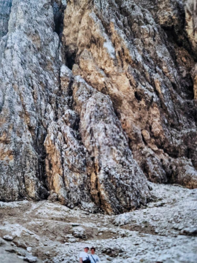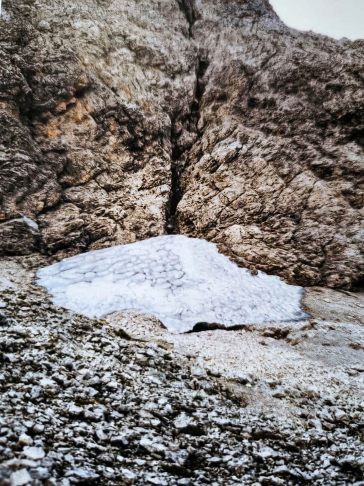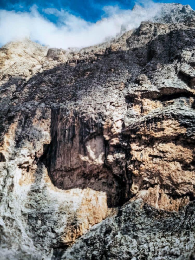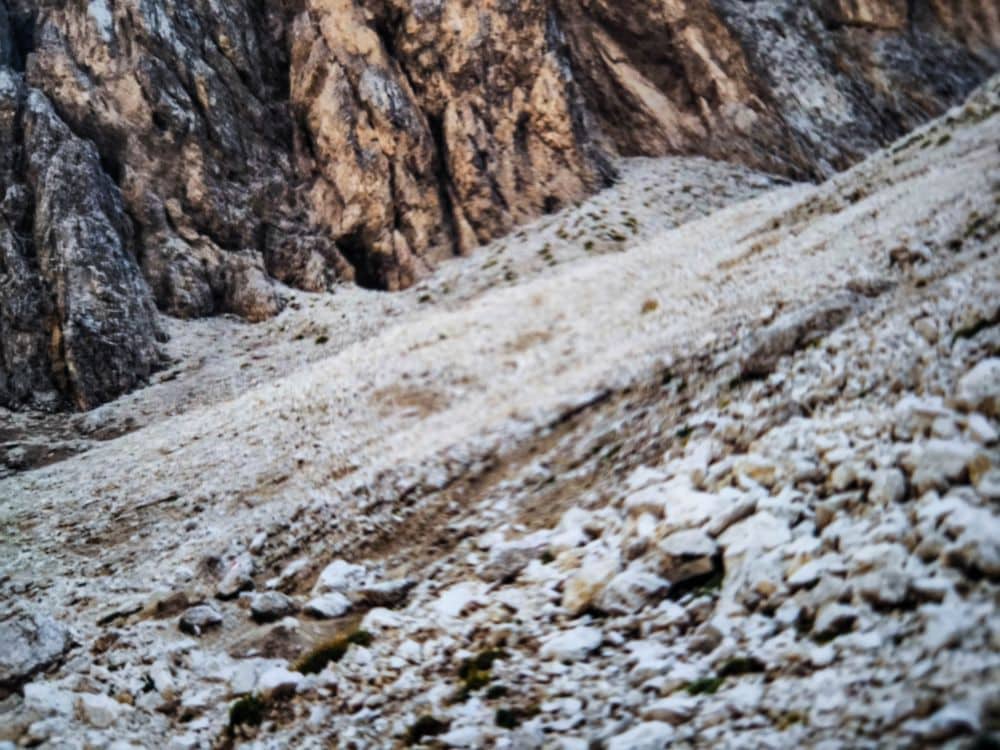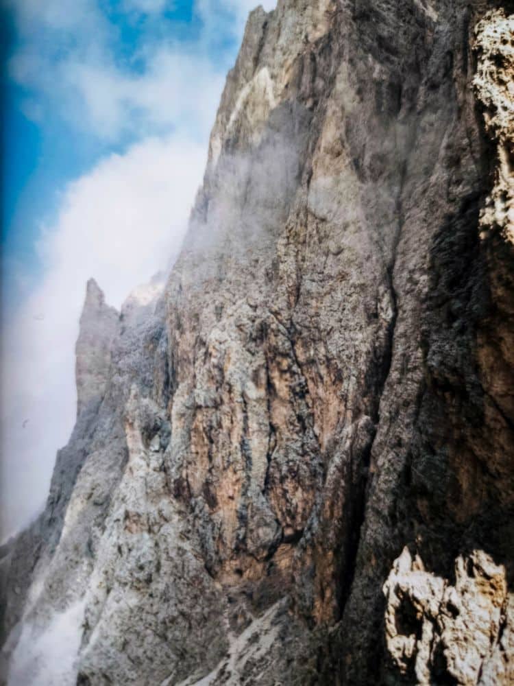 Trotz dieser Herausforderungen lohnt sich jeder Blick auf die Felsenwelt, die Euch umgibt. Die Wände von Langkofel und Fünffingerspitze zeigen hier ihre ganze geologische Vielfalt: feine Bänder, scharfe Kanten und gewaltige Platten, die im Morgen- oder Abendlicht in warmen Tönen von Gelb bis Rot leuchten.