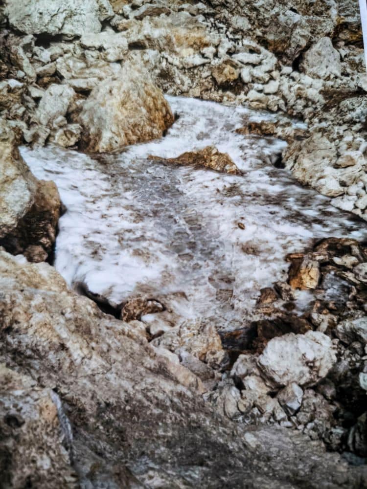 Jeder Schritt muss bewusst gesetzt werden, denn die Steine können leicht ins Rutschen geraten. An manchen Stellen ist der Pfad so schmal, dass man sich auf den Fels zur Seite stützt, um das Gleichgewicht zu halten. Es gibt auch kurze Abschnitte mit festem Fels, auf denen Ihr Euch mit Hilfe der Hände zusätzlich sichern könnt. Nach Regen oder Schneefall ist besondere Vorsicht geboten, da sich der lockere Untergrund schnell in eine rutschige Schicht verwandelt.