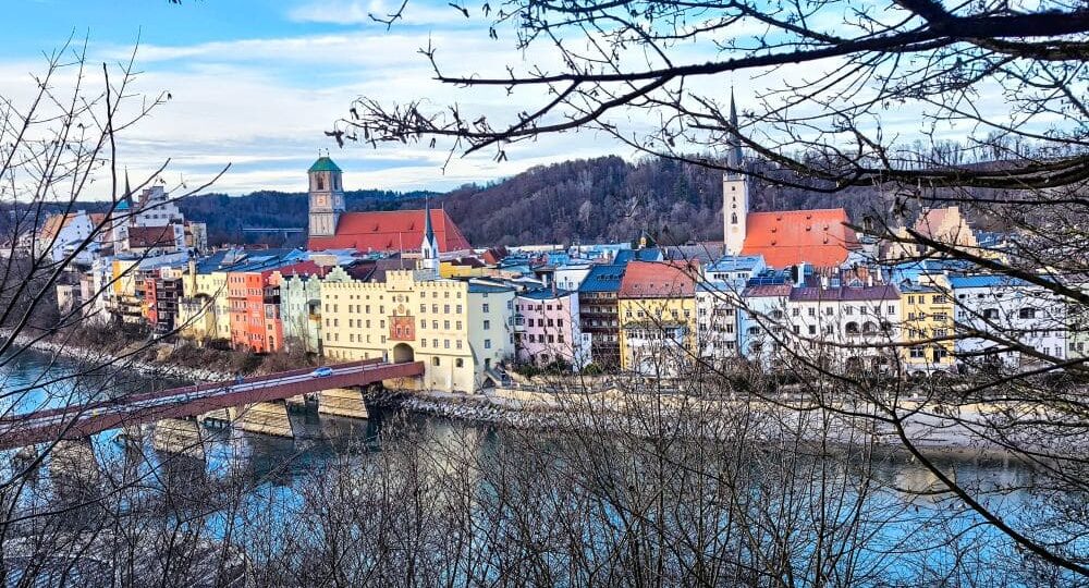 Auf der gegenüberliegenden Seite des Inns solltet Ihr unbedingt den Weg hinauf in Richtung Schöne Aussicht ein Stück hinauf gehen. Von dort aus habt Ihr einen tollen Blick auf die Innschleife und die gesamte Altstadt. Das Zusammenspiel von Natur, Stadt und Fluss ist hier besonders eindrucksvoll zu erleben.